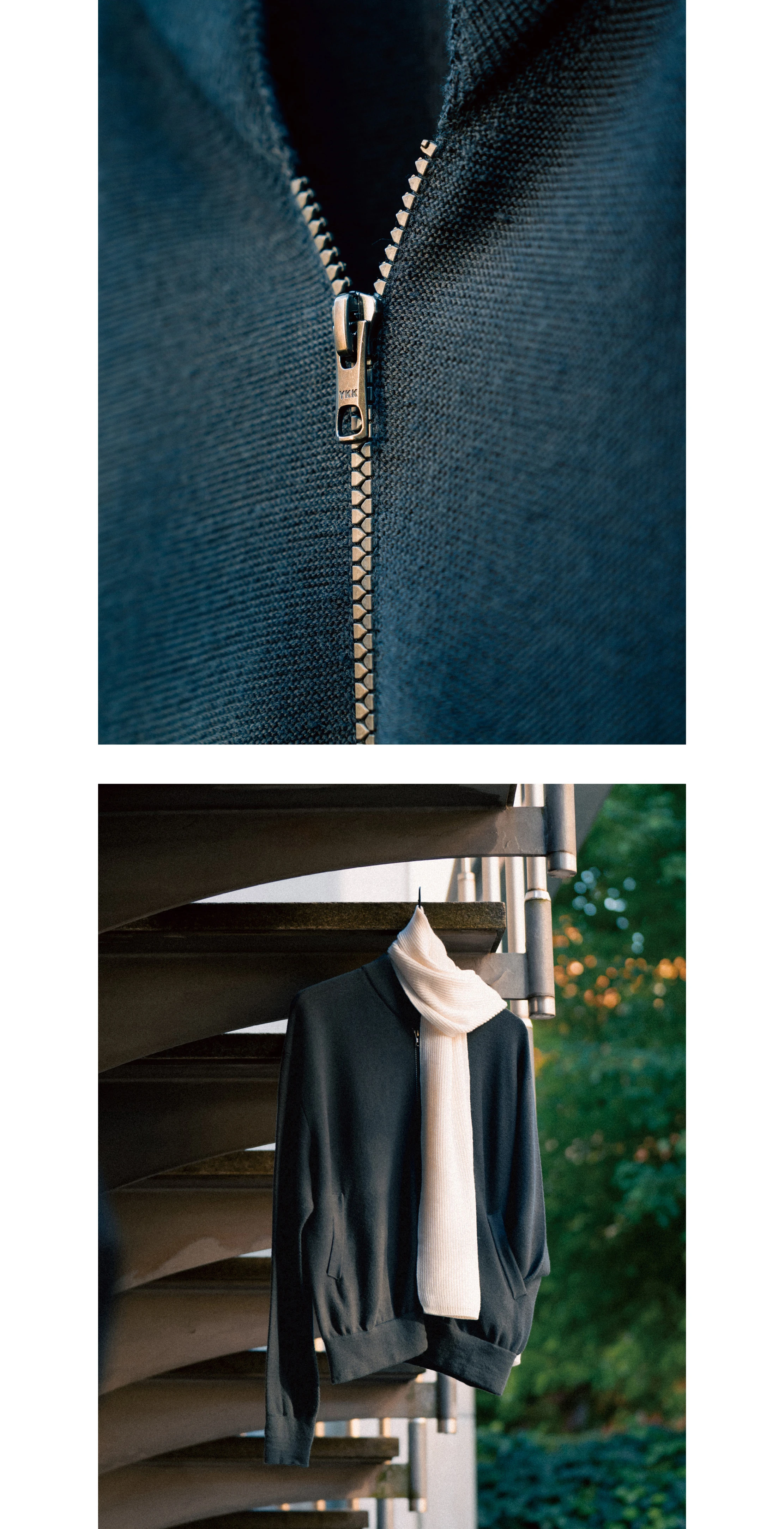 朝のピラティスから数駅先の自転車移動まで、都市を軽やかに移動するあなたに、快適性と保温性を両立するニットブルゾンWOOL KNIT FLAT-ZIP JACKETを。光電子糸を合わせたメリノウールは温度差のある屋内外の行き来でも快適さを保つ。ボディに直接ファスナーを編み込む新技術がファスナーとボディの一体感を高め、ミニマルな佇まいと軽量性を両立。テープを使わない構造が、既存のファスナー生産よりもCO₂排出を抑える点も、選ぶ基準にしたい理由のひとつ。自分にも、地球にもコンシャスなあなたの冬に。
