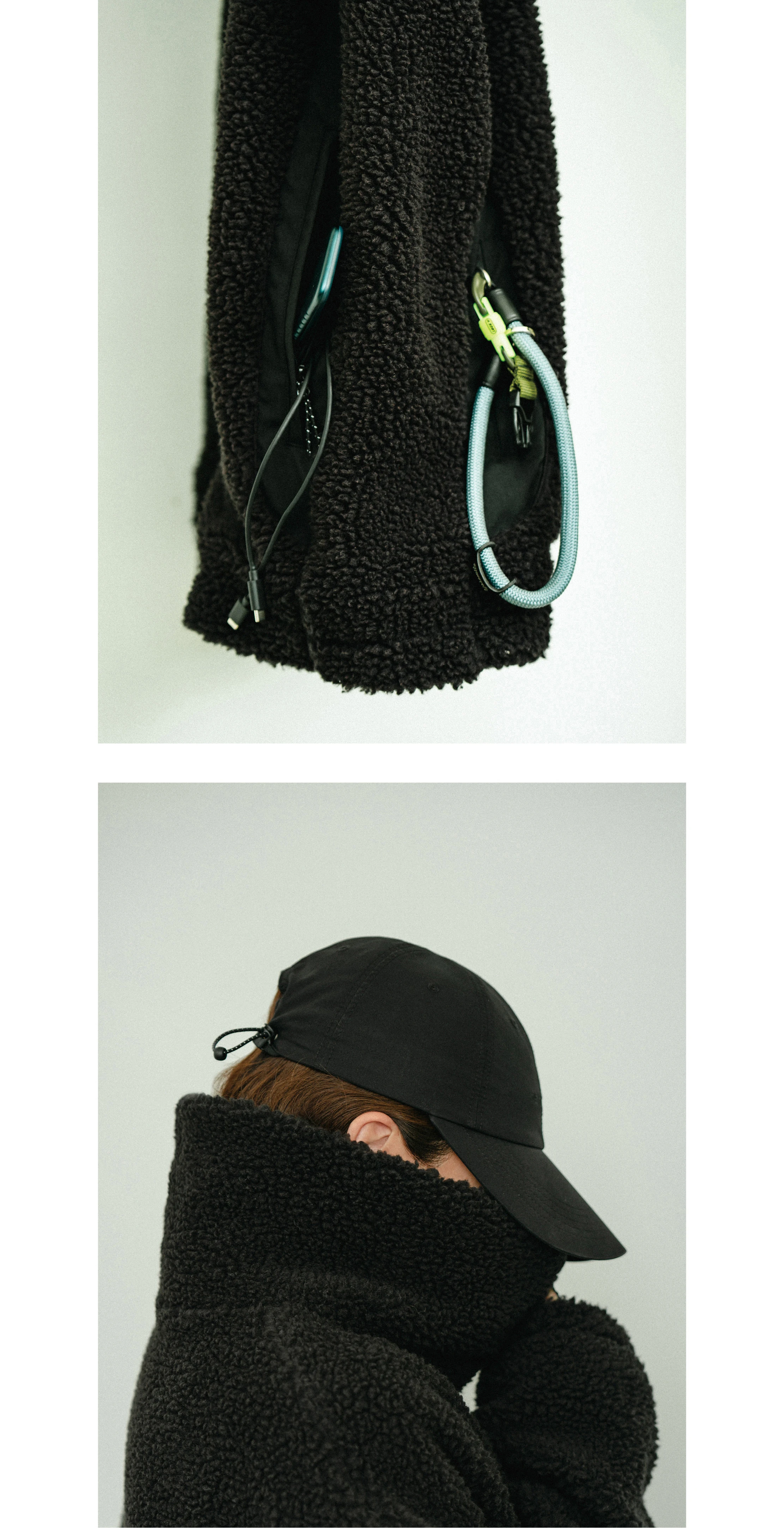 冬の光は角度によって表情を変え、次の瞬間にはふっと消えてしまう。その小さな変化に惹かれて歩くうち、シャッターボタンに触れる指先から静かに熱が奪われていく。SNOWMELTのボアはその冷えを受け止め、構図を探して立ち止まる時間にも心地よさを保ってくれる。首元まで覆うハイネックは風の入り込みを抑え、ファインダー越しに見える景色にゆったりと向き合える。通気性の高い裏地は、歩き回るうちに立ち上がる熱を逃がし、あなたは軽やかさにまた次の1枚へ。ポケットまわりに使用されたCODURA混の平織りウール生地の強度は、頻繁な小物の出し入れにも耐えてくれる。写真好きの日常に、静かに応える一着だ。