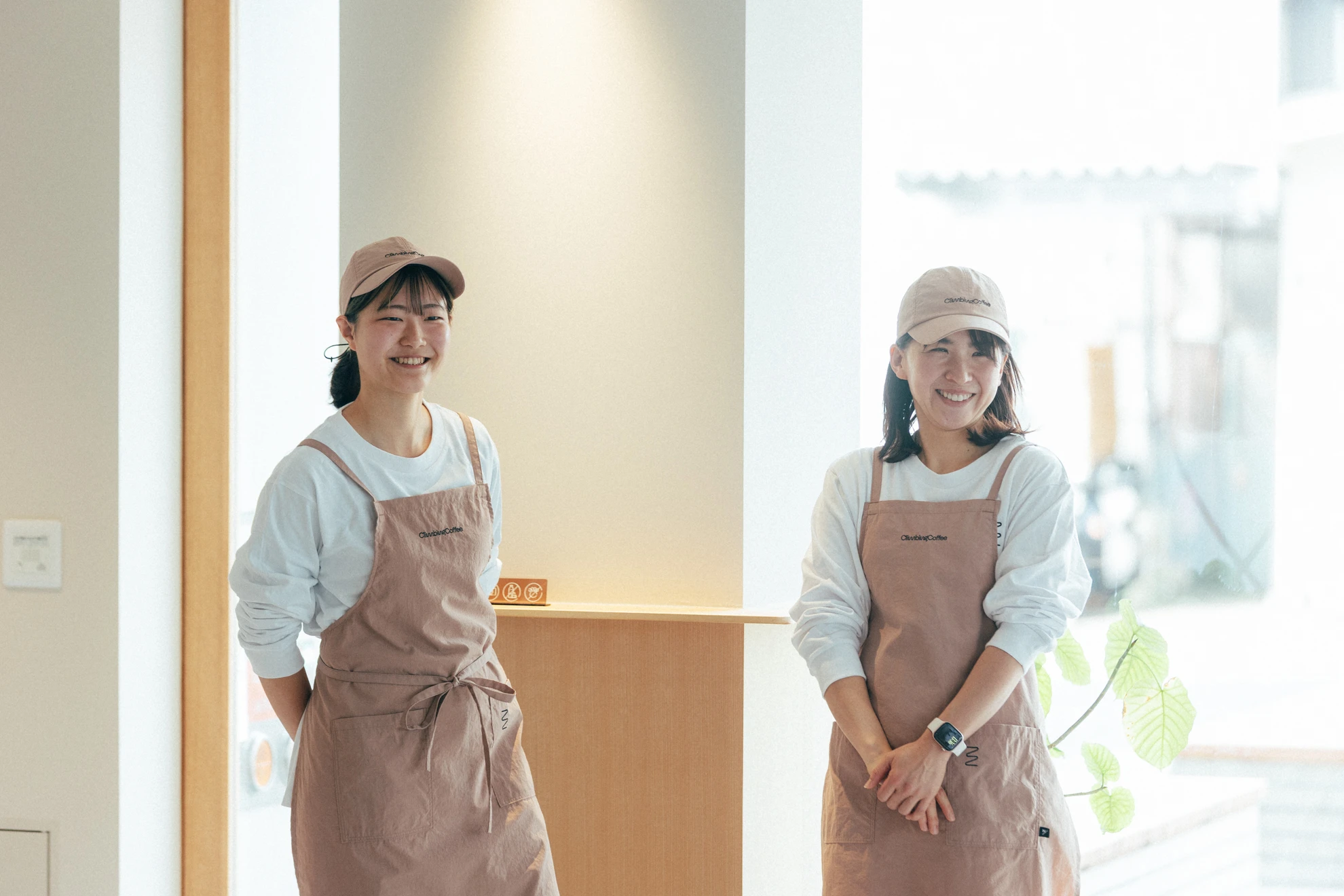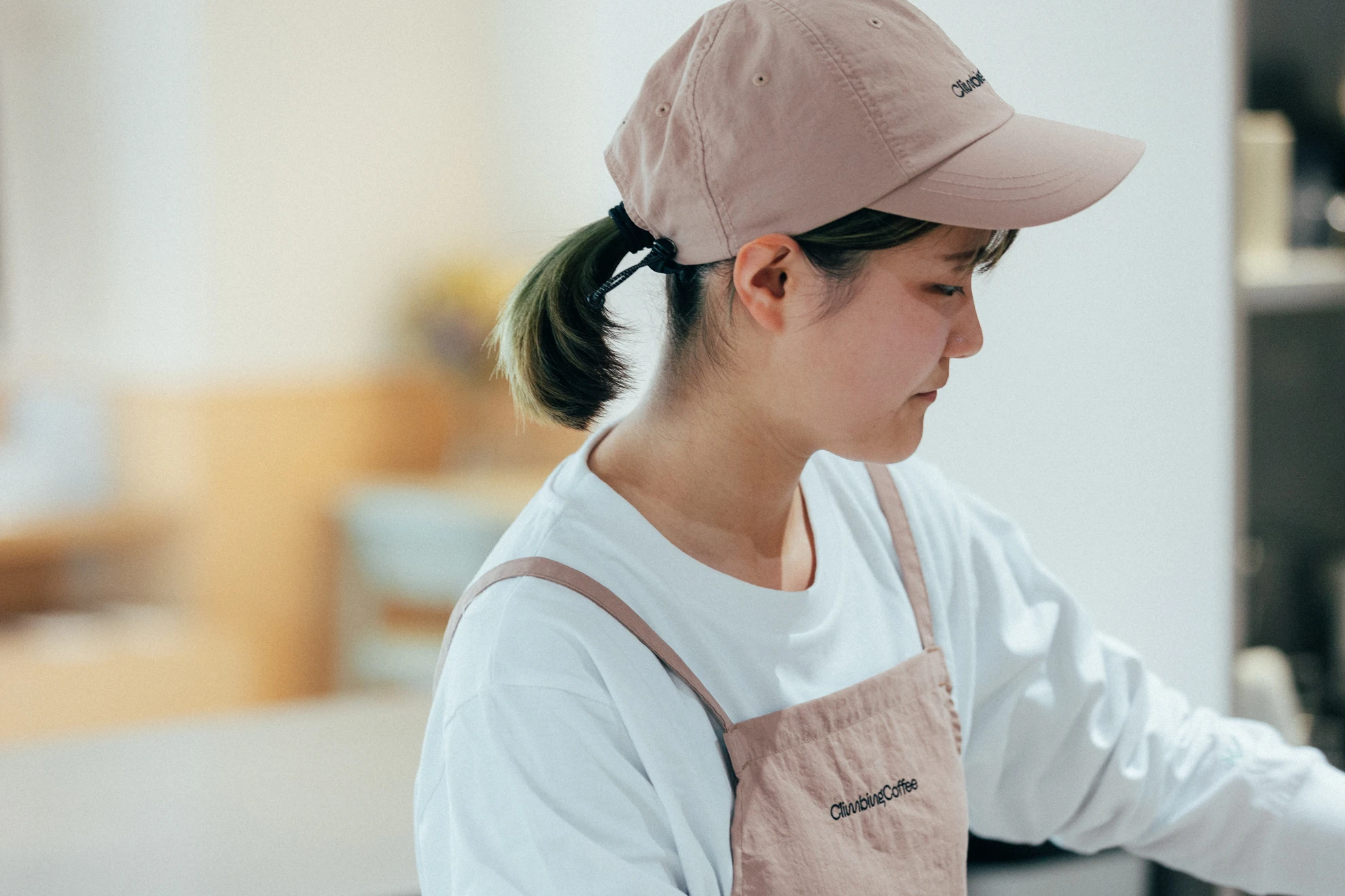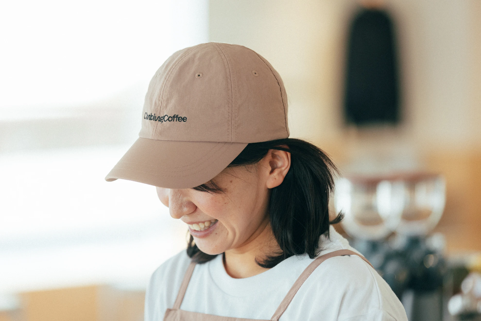 エプロンとキャップは、抽出後に残るコーヒーかすを使って染色が施されたものを着用しています。天然由来ならではのやわらかな色合いは、お店のサブグラフィックのサインのカラーともマッチしており、Climbing Coffeeらしさを象徴する存在になっています。内装のデザイン計画段階から対話を重ねてきたことで、素材や色のトーンにも一体感が生まれ、スタッフの装いもこのお店の空気をつくる要素になりました。ここが、これからもふと立ち寄りたくなる場所として、街の日常に馴染んでいくことを願っています。
