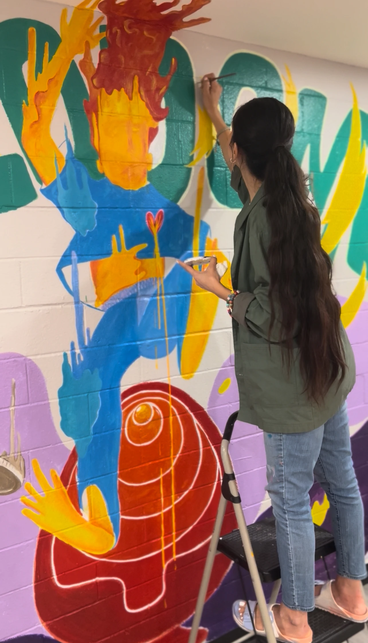 いつ、どこで、何をしていても、常に100%自然体で在り続けるソーマス。医科大学に通い、お医者様になるはずだった彼女は、自分のアートやクリエイティブへの情熱に正直でいようと、「医者になる」という道を手放してアーティストに。写真の背景画はソーマス作。彼女の作品はどれも、彼女自身が表れているような、自由だけどメッセージ性がある。彼女の言葉ひとつひとつにもジャッジメントはなく、アートのように自由で、すべてを受け入れる優しがある。ソーマスと居る時間は、何とも言えない安心感に包まれるから不思議。そんなヒーラー的なエネルギーの彼女は、ウェルネスについてこう答えてくれた。