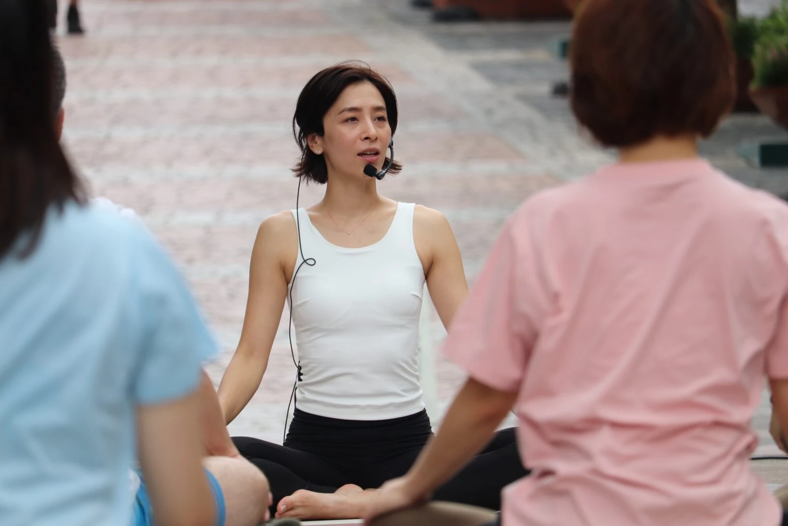 「YOGA」では、心地よい風を感じながら深い呼吸とやさしいヨガの動きで、ココロとカラダをゆっくりと整えました。伊藤ゆりさんの穏やかな声に導かれながら、参加者の皆さんは呼吸を整え、日常の慌ただしさから少し離れて“今この瞬間”に集中。最後のシャヴァーサナ(休息のポーズ)では、静かな安らぎに包まれていました。恵比寿ガーデンプレイスの開放的な空間が、まるで屋外スタジオのような心地よさを演出し、自分自身と向き合う豊かな時間となりました。